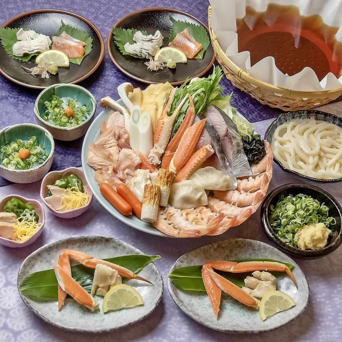 Marufuku has introduced a course with all-you-can-drink that is perfect for party planners. Perfect for this season, you can enjoy shrimp and crab chanko nabe as the main dish, boiled snow crab, sashimi, and even puffer fish skin with ponzu sauce! With 120 minutes of all-you-can-drink included, it can be used for a variety of occasions, from company banquets and family dinners to friends.Please take this opportunity!